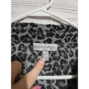 Fashion Bug Black Leopard Ruffle Button Front Long Sleeve Top Womans Size 22/24W. Pre-owned