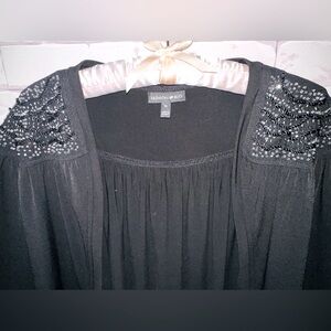 Fashion Bug Black Open Front Shrug/Wrap - Size 1X Embellishments Lightweight