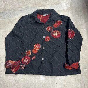 Fashion Bug Button Up Jacket Black Floral Embroidered Patchwork
