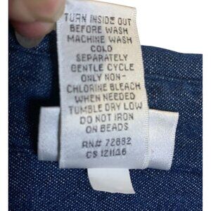 Look stylish and trendy with this Fashion Bug denim shirt. Adorned with an embroidered bear and rhinestone accents, this shirt features a collared neckline and a button-up closure. The long cap sleeves and wide strap make it perfect for any occasion, be it travel, party, casual, workwear or business.