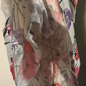 Dress has pockets it’s beautiful bright floral pattern is an eye catcher.