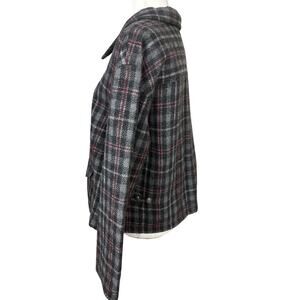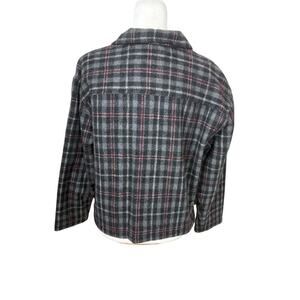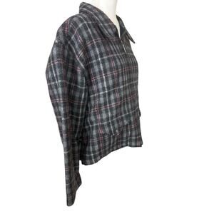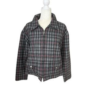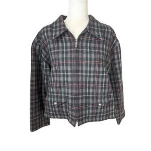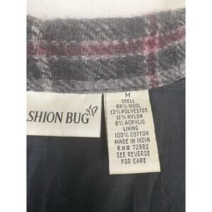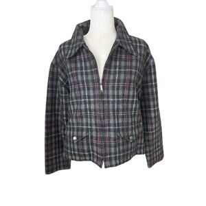 Fashion Bug Jacket Womens Size M Gray Wool Windowpane Plaid Y2K Clueless Preppy