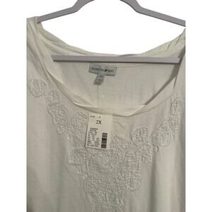 Fashion Bug NWT Women's 2X Beach Floral Textured Raw Metallic Stripe Top Clean