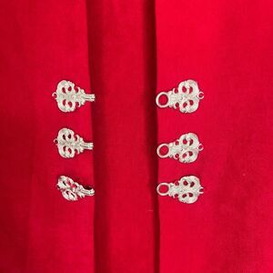 Fashion Bug Power Red Velvet Attached Embroidered Jacket Dress Sz 10P