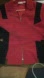 Chic blazer with bold red and black contrast. Features a zip front and elegant design. Ideal for a sophisticated look.