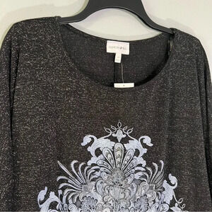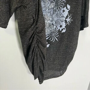 Fashion Bug Ruched Top NEW Black Silver Sparkle Blouse Plus Size 2X Medallion