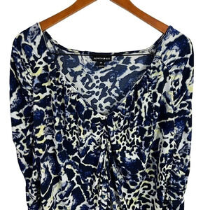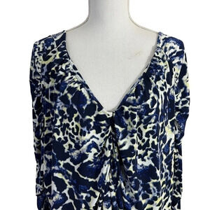 Fashion Bug Ruched Tunic Blouse 2X Stretchy Leopard Print Blue Neon Yellow White