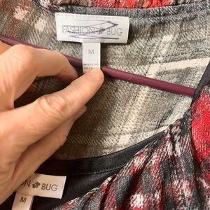 Elevate your wardrobe with this effortlessly cool and feminine blouse. Featuring a moody red, black, and grey plaid print, this lightweight sheer blouse combines boho romance with grunge edge. Delicate ruffle trim along the neckline and down the front adds a flirty, vintage-inspired touch, while the flowy silhouette, peasant-style sleeves, and elastic cuffs and hem offer comfort and easy styling.