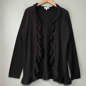 Fashion Bug open front long sleeve black ruffled cardigan sweater in Excellent pre-owned condition.