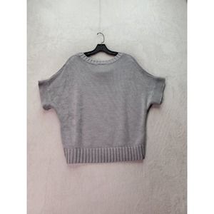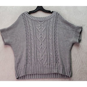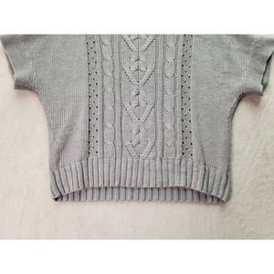 Fashion Bug Sweater Womens Large Gray Cable Knit Acrylic Short Sleeve Round Neck