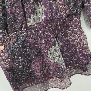 This elegant women's top features a beautiful purple paisley design, perfect for any occasion. The stylish pattern adds a touch of sophistication to your wardrobe.