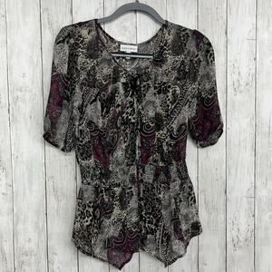 Fashion Bug Vintage 2 Piece Flowy Shirt Skirt Set Fairy Paisley Animal Print
