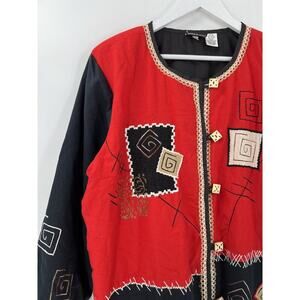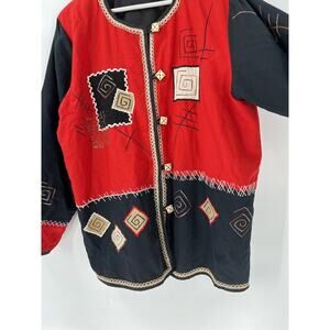 Fashion Bug Vintage Jacket Womens 14/16 Red Black Button Embroidered Patchwork