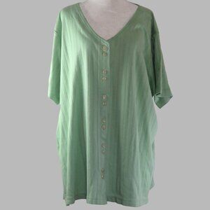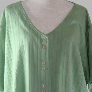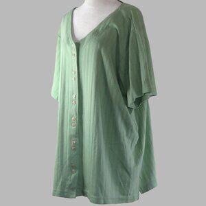 Fashion Bug Women's Green Short Sleeve Button-Up V-Neck Blouse Size 26/28W C924