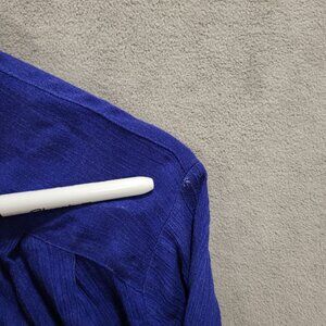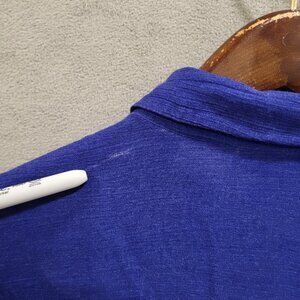 This shirt is in good pre-owned condition. This shirt has a small pull in the upper left shoulder area and some discoloration. Please see pictures.
