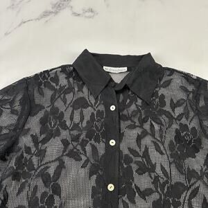 Fashion Bug Womens Vintage Y2k Lace Top Size L Black Sheer Floral Button Up
