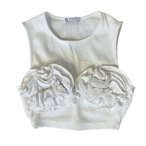 Fashion Bundle Outfit 3D Floral Crop Top Mesh Long Sleeves Satin Ruffle Pants Size S