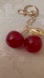 Add a playful touch to your accessories with this charming gold and red cherry keychain. Perfect for adding a pop of color to your bag or keys.