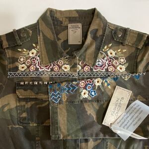 Fashion Concepts Women's Long Sleeve M Jacket Camo Embroidered Snap Button NWT