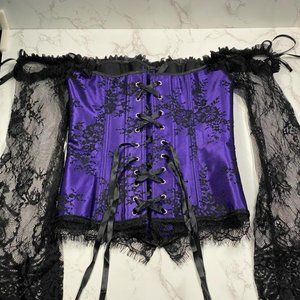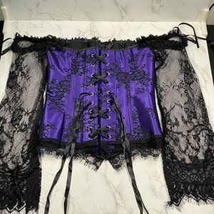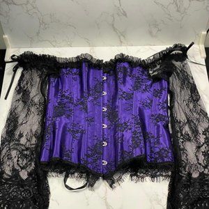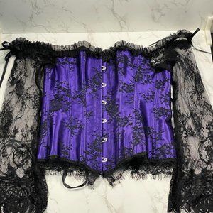 Fashion Corset Top Satin Lace up retro Court Style Boned Bustier Size S