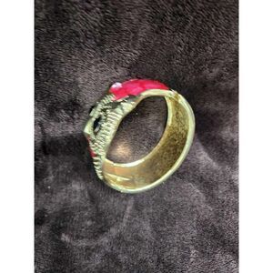 This unique and stylish bracelet is perfect for any occasion. The round shape and multicolor exterior make it a true beauty. The clasp closure and fold-over design add a touch of art and convenience. Made from high-quality acrylic and brass metal, this bracelet is durable and long-lasting. Whether you're going to the beach or attending a formal event, this bracelet will complement your outfit perfectly. And with its red color, it will make a bold statement that will draw everyone's attention.