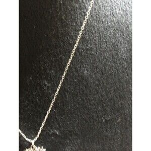 Fashion Double G Heart Clear Stones Charm On 20” .925 Silver Dainty Necklace GUC