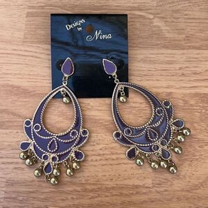 *Cross Purple Gem Large Silver Toned Fashion Earrings