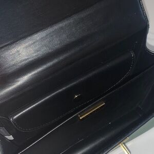 Elevate your style with this crossbody bag in striking black and green. Gold accents enhance its luxurious appeal. Perfect for any fashionable outing.