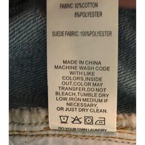 A trendy denim mini skirt from Fashion Express. This light wash denim skirt features stylish distressed and ripped detailing with a unique patterned underlay and a raw frayed hem. The classic five-pocket design and belt loops add to its functionality. Perfect for casual outings, concerts, or summer festivals, this skirt effortlessly combines edgy style with everyday wearability.
