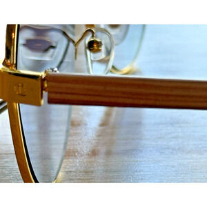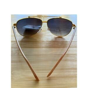 Lightweight, stylish, aviator style sunglasses - metal frame with faux wood arms. These glasses are in new condition with no scratches or defects. Please see images for details and approximate measurements.