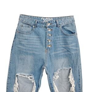 Fashion FWD Destroyed Jeans Size 9/29 Light Blue Wash Button Fly High Rise
