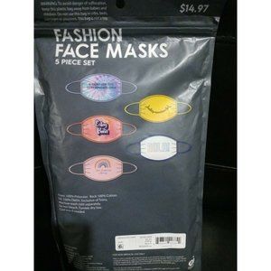 Fashion Face Sports Mask, 5-Pack, Washable Re-Usable. One Size Fits Most Adults