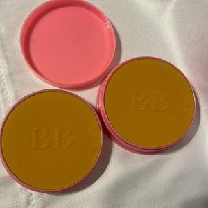 Contain sponge, round mirror and 2 powder cakes
