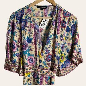 Fashion Fuse Cream Floral Print Short Sleeve Wrap Maxi Dress Size Small