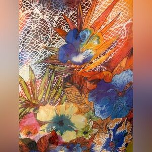 Fashion Fuse Orange and Blue Graphic Tie Front Blouse Beach Coverup Sheer. Size L/XL