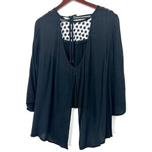 Fashion Fuse Womens Sz L Black Top Sheer Open Back Flare Sleeve Lace Blouse H2