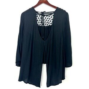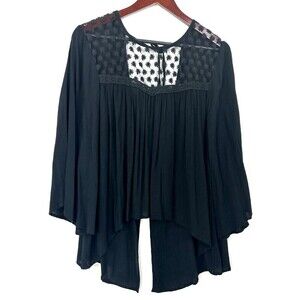 Fashion Fuse Womens Sz L Black Top Sheer Open Back Flare Sleeve Lace Blouse H2