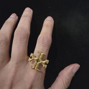 Elegant gold ring with a distinctive logo design. Perfect for adding a touch of luxury to any outfit. Stainless Steel