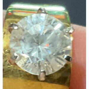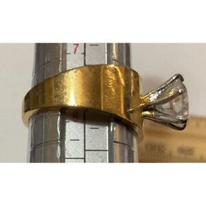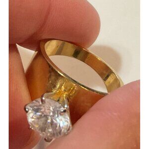 Fashion Gold Tone Engagement Ring Size 8 Solitary Round CZ Diamond Accent