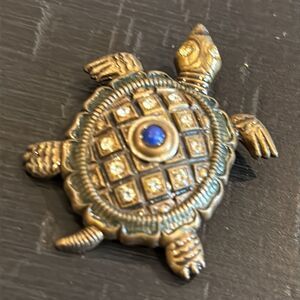 Fashion Gold and Blue Turtle Accent Piece Rhinestone