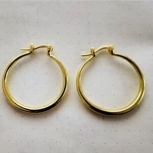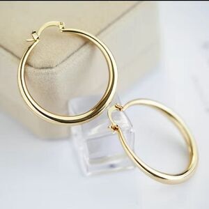 Fashion Golden Plated Hoop Earrings Simple Design 1.3 in diameter