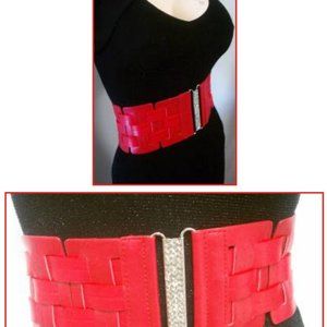 Add a pop of color to your outfit with this chic red waist belt. Made from high-quality faux leather, this wide belt is perfect for cinching in your waist and creating a flattering silhouette. The elastic band ensures a comfortable fit in sizes S to M.(The belt offered here measure -28" inches prior to stretching.
