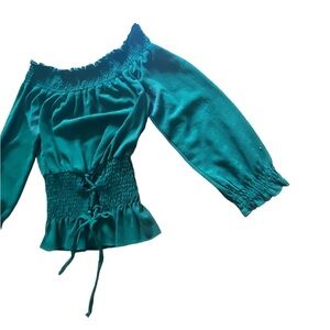 {Fashion House} off shoulder Lace up back 3/4 sleeve blouse