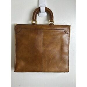 Fashion Imports Vintage Italian Leather Top Handle Cognac Brown Messenger Bag