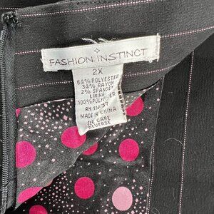 Fashion Instinct Women Straight Skirt 2X Black Pinstriped Lined Back Zip Stretch