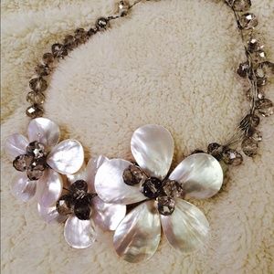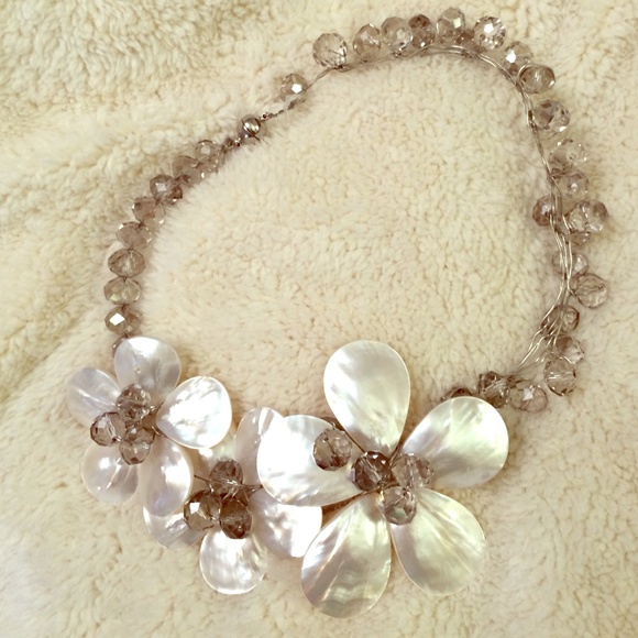 Beautiful crystal like beads with shell petals. Only wore once. Will definitely dress up any outfit. Magnetic clasp. Easy to put on/take off.