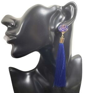 Condition: NWT - Fashion Jewelry Women's Blue & Gold Dangle Tassel Bohemian Post Earrings Boho Sz OS