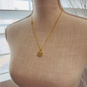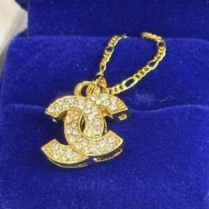 Dazzling gold necklace with crystal accents. Gold Plated CC Charm with white crystals. Ideal for chic elegance.