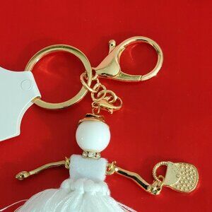 Fashion Jewelry Moveable Lady Keychain Bag charm in a full white dress