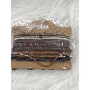 Fashion Jewelry Multilayered Cuff Bracelet Leather Stack Brown Beads Rope Mix